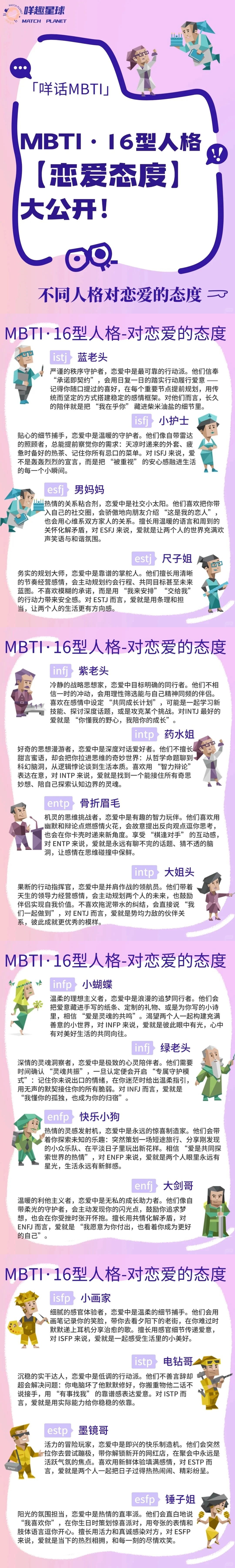 ps:其实不管是星座还是mbti,没办法完全了解一个人,如果你有心仪的ta,可以从mbti作为话题的切入点,但这不是全部,人都是多面性的,还是要多多见面、多多交流才能更了解一个人~